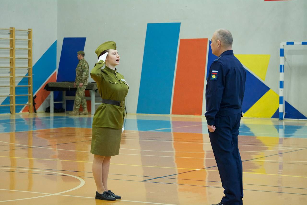 На этот раз взвод девушек стал участником муниципального смотра строя и песни.