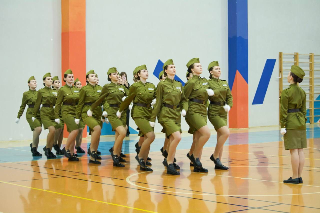 Это уже не первое строевое выступление команды девушек Нижнекамского филиала КИУ! Ежегодно с большим упорством и старанием студентки осваивают строевые приёмы: строевую стойку, строевой шаг, повороты, сборку и разборку автомата Калашникова. Представительницы прекрасного пола соревнуются наравне с юношами и демонстрируют высокий уровень подготовки.